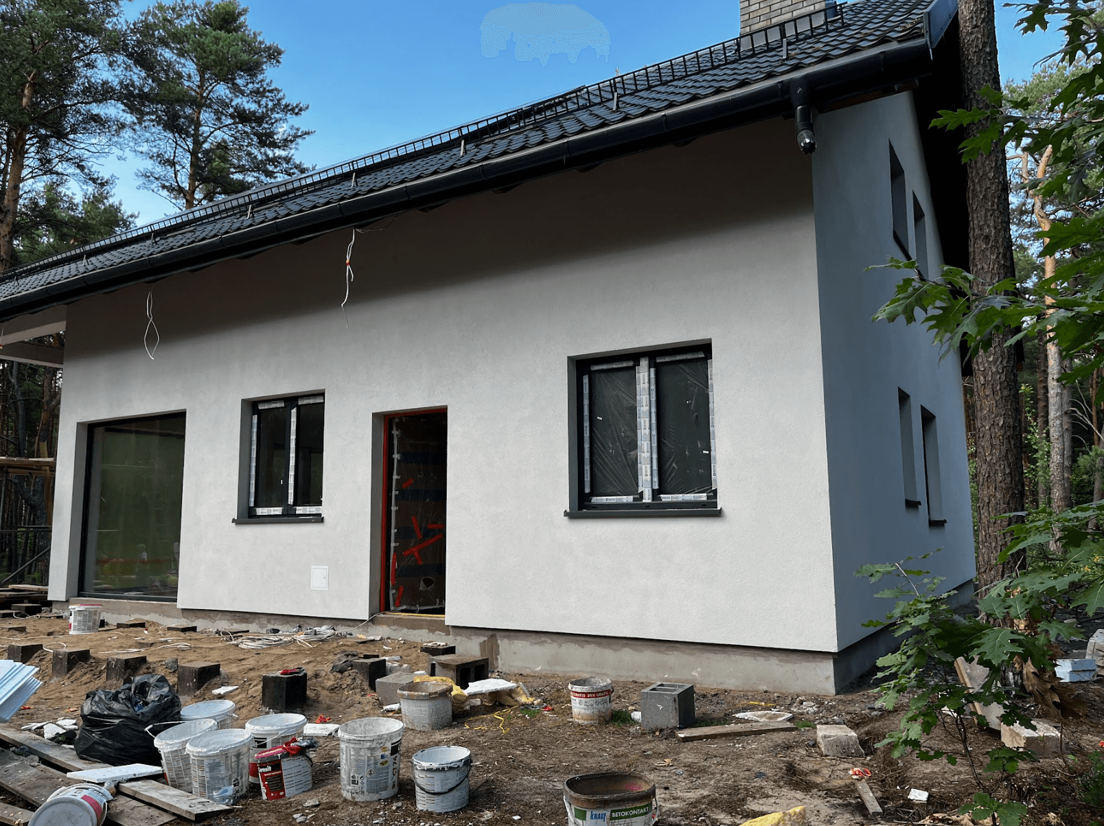 Dom jednorodzinny o charakterze letniskowym, zrealizowany pod Warszawą, to budynek o powierzchni 180 m², wykonany w technologii tradycyjnej, zaprojektowany z myślą o komforcie użytkowania oraz harmonijnym wpisaniu w otoczenie lasu. Projekt charakteryzuje się czytelnym układem funkcjonalnym oraz dużymi przeszkleniami, które zapewniają dobre doświetlenie wnętrz i wizualne otwarcie na zielone otoczenie. Zastosowane rozwiązania konstrukcyjne i materiałowe odpowiadają standardom wypracowanym przy realizacji większych inwestycji, z naciskiem na trwałość, energooszczędność oraz optymalizację kosztów eksploatacyjnych. Inwestycja stanowi przykład przeniesienia doświadczeń z dużych projektów na realizację indywidualnego domu jednorodzinnego o spokojnym, letniskowym charakterze.